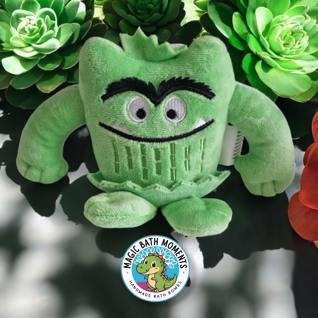 Each bath bomb hides a calming dragon toy to spark imaginative play and emotional expression. (Dragon colors may vary to create a magical surprise.) Plus Green Color Monster Plush Toy-Soft, Cuddly.