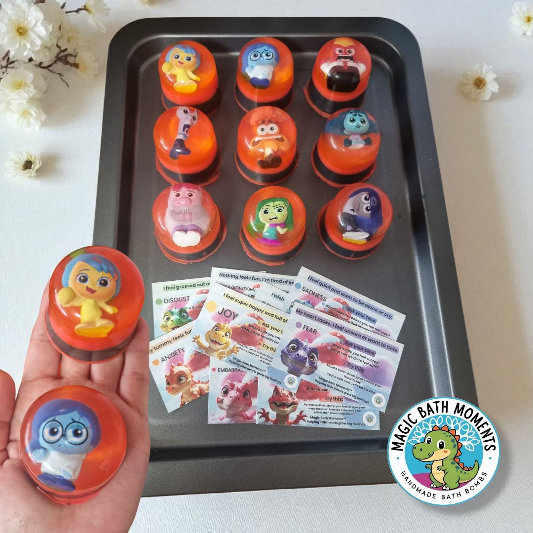This fun pack also includes 9 colorful soaps representing key feelings: Joy, Sadness, Anger, Fear, Disgust, Anxiety, Envy, Embarrassment, and Ennui, along with 9 matching Feelings Cards to help children connect emotions with characters in a simple, engaging way.
